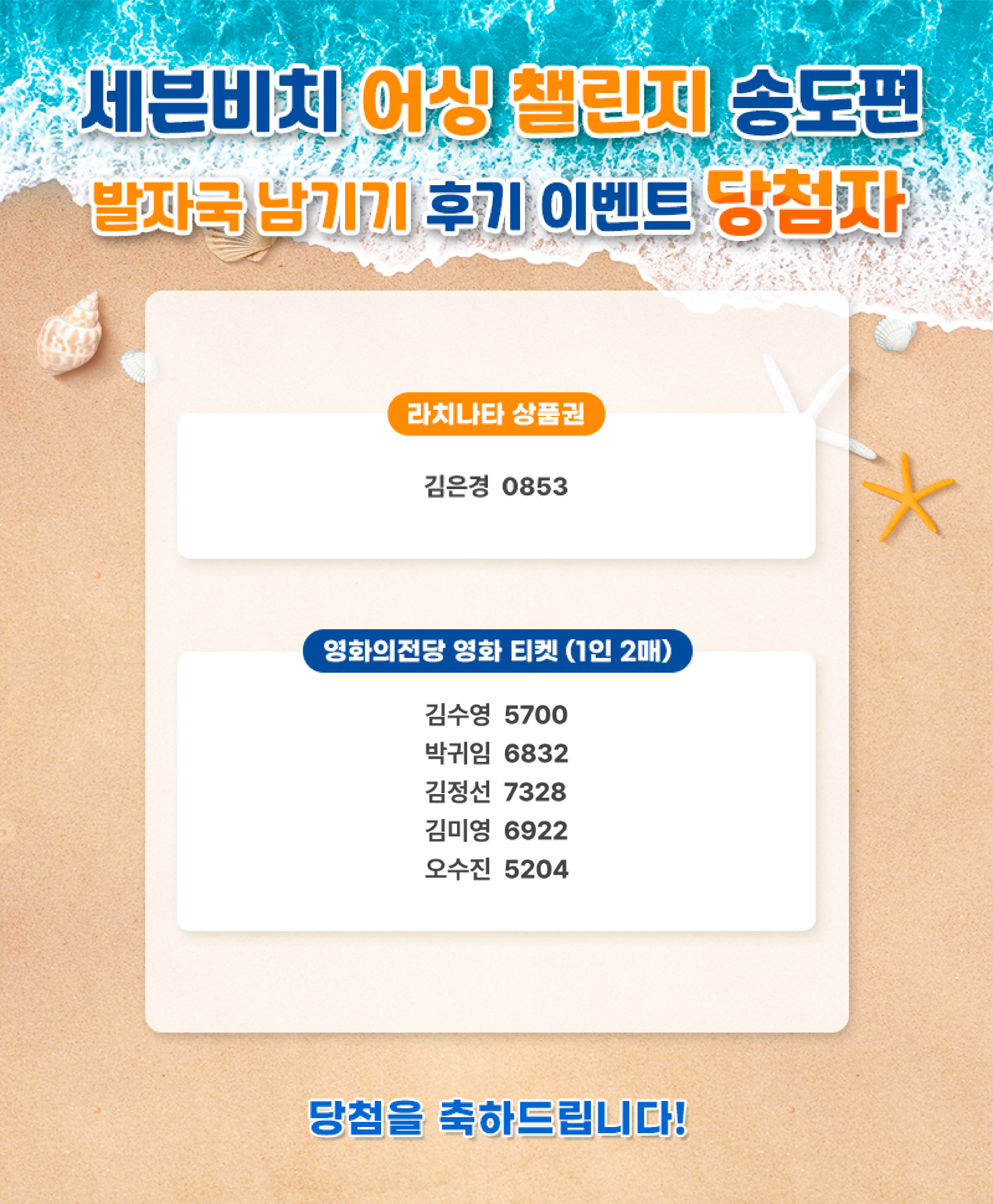 세븐비치 어싱 챌린지 후기 이벤트 당첨자 안내