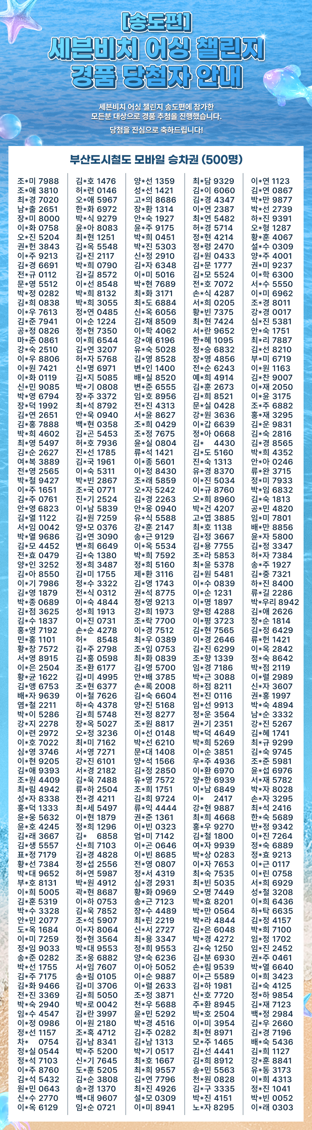 [송도편] 세븐비치 어싱 챌린지 경품 당첨자 안내