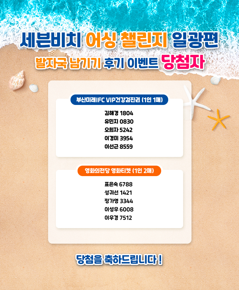 세븐비치 어싱 챌린지 후기 이벤트 당첨자 안내